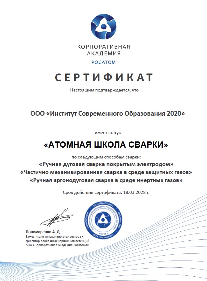 18 марта 2026 года Институт Современного Образования 2020 Центра компетенции по сварке ГАЦ РБ получил статус «Атомная школа сварки», проекта Корпоративной Академии Росатома.